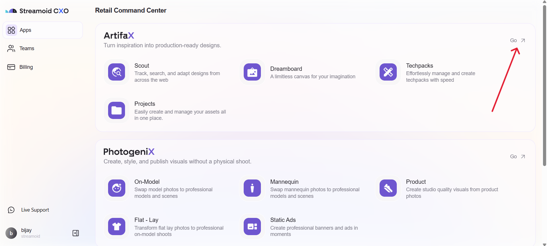 Use the Artifax shortcut arrow on the CXO dashboard to open the app.