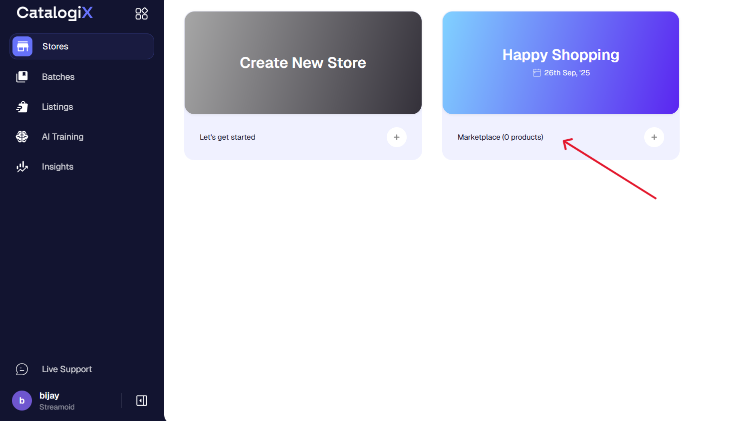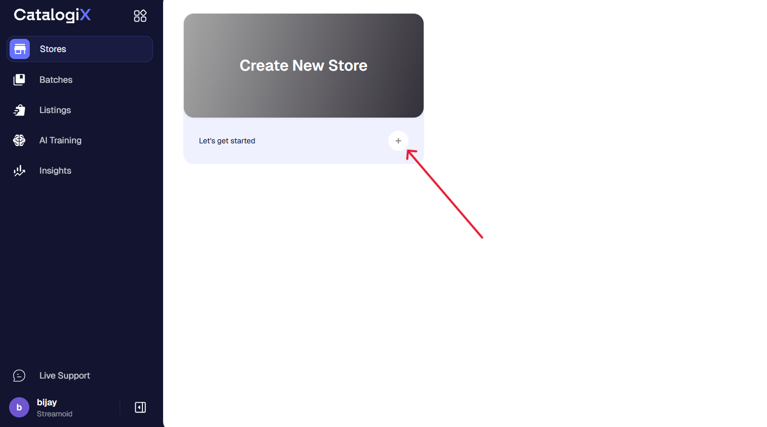 Click the + button under Create New Store to start setting up your store.