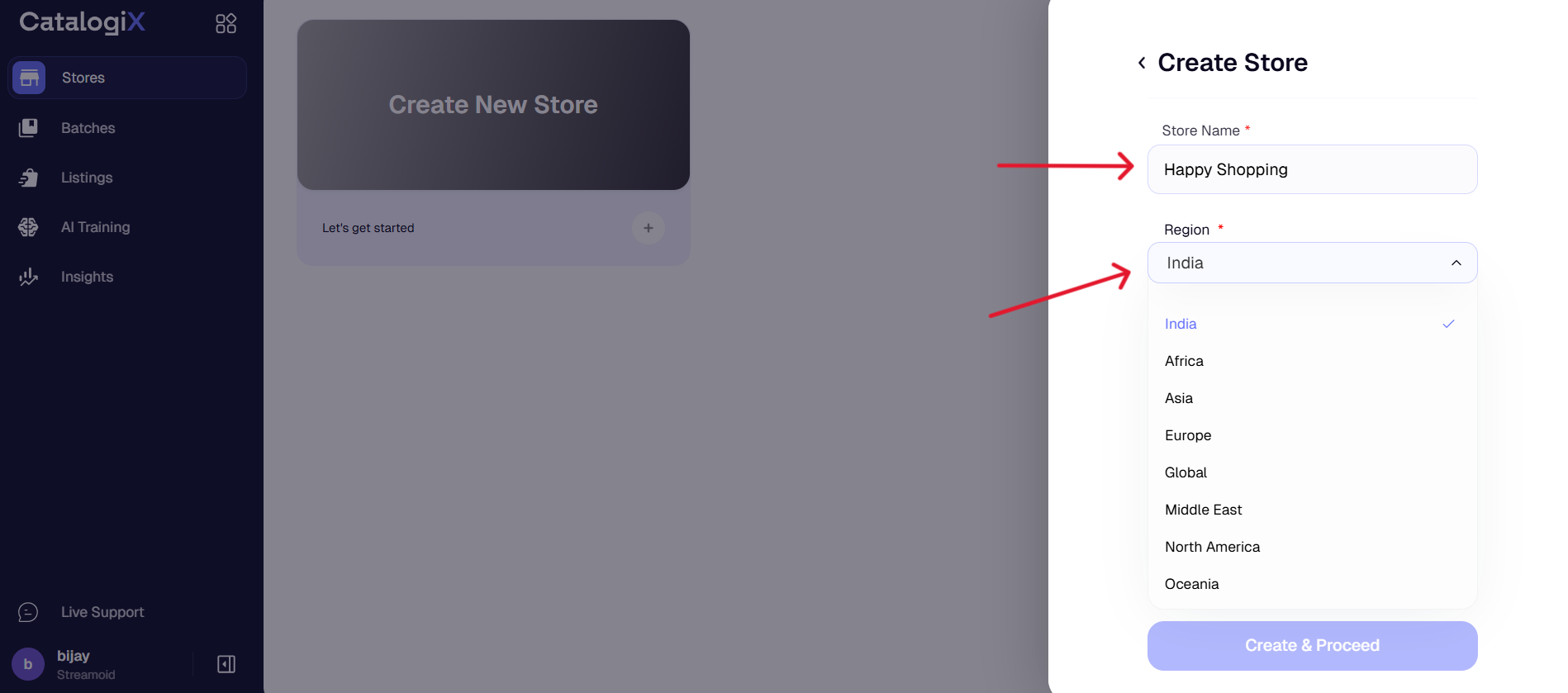 After confirming all details, click Create & Proceed to set up your store.