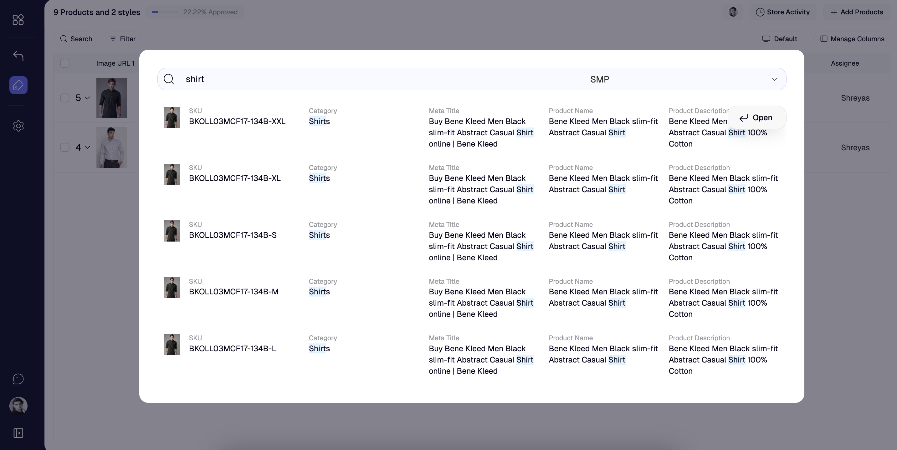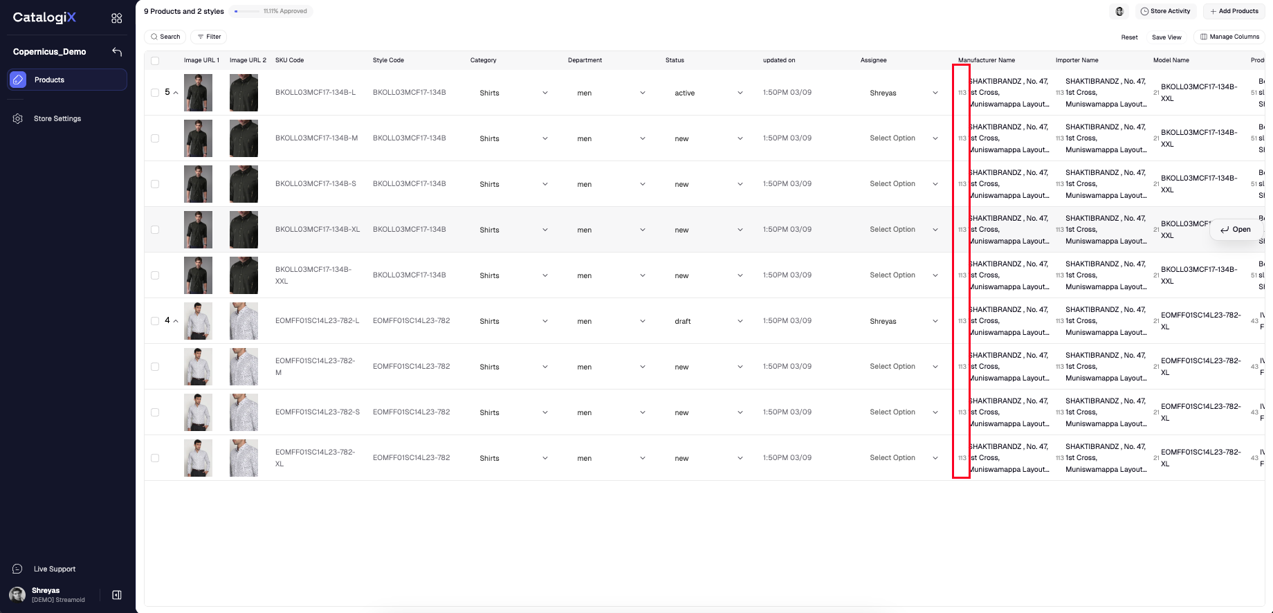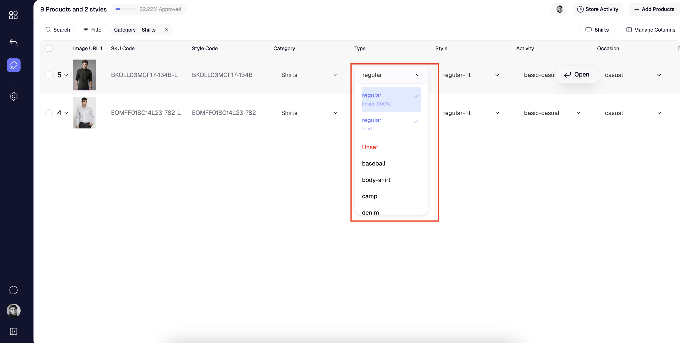 In case you want to make changes to any attirbute, Click any attribute cell to open the dropdown selector and choose a new value. Search inside the dropdown to find the right option quickly.Set Product Status