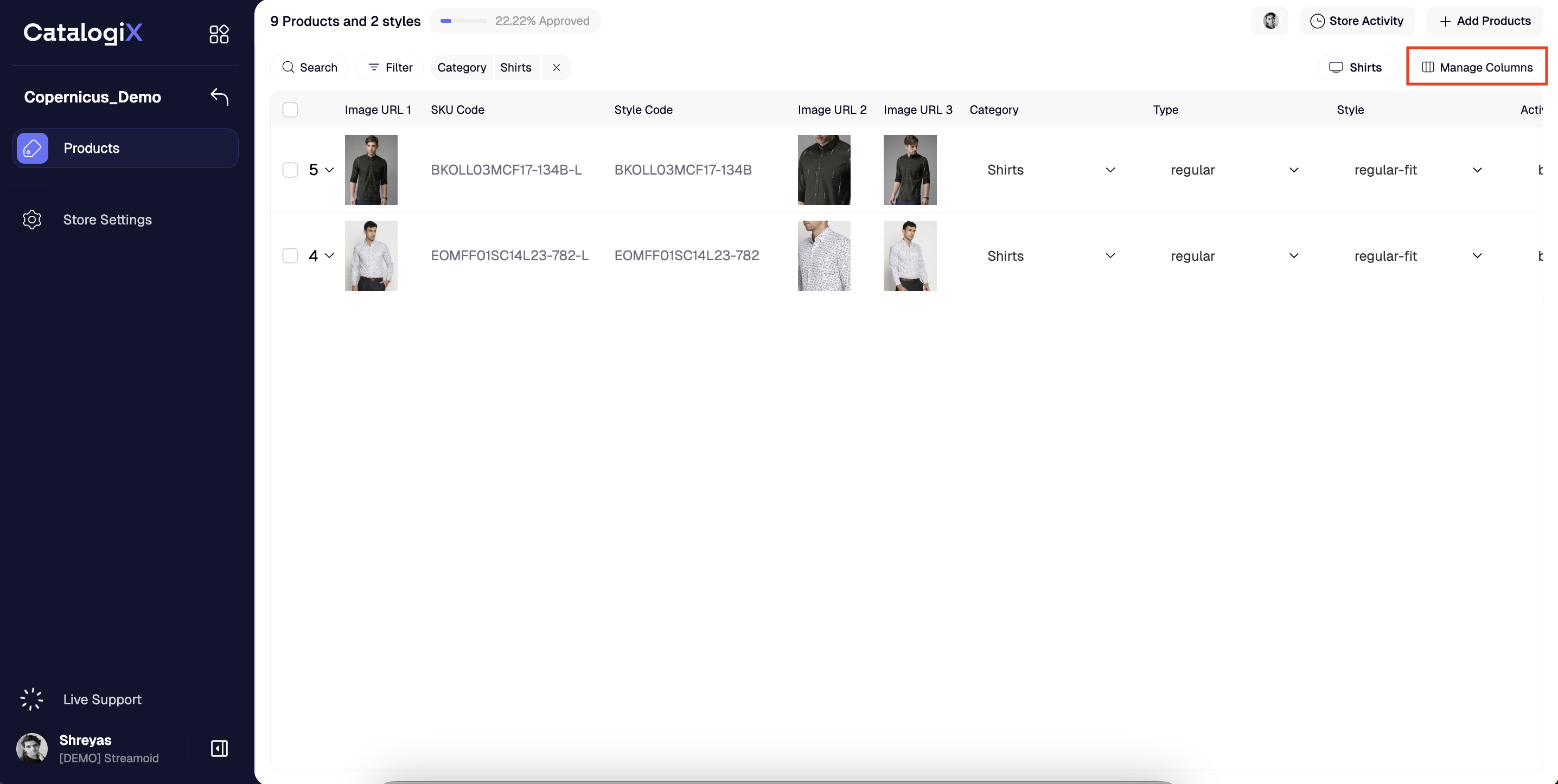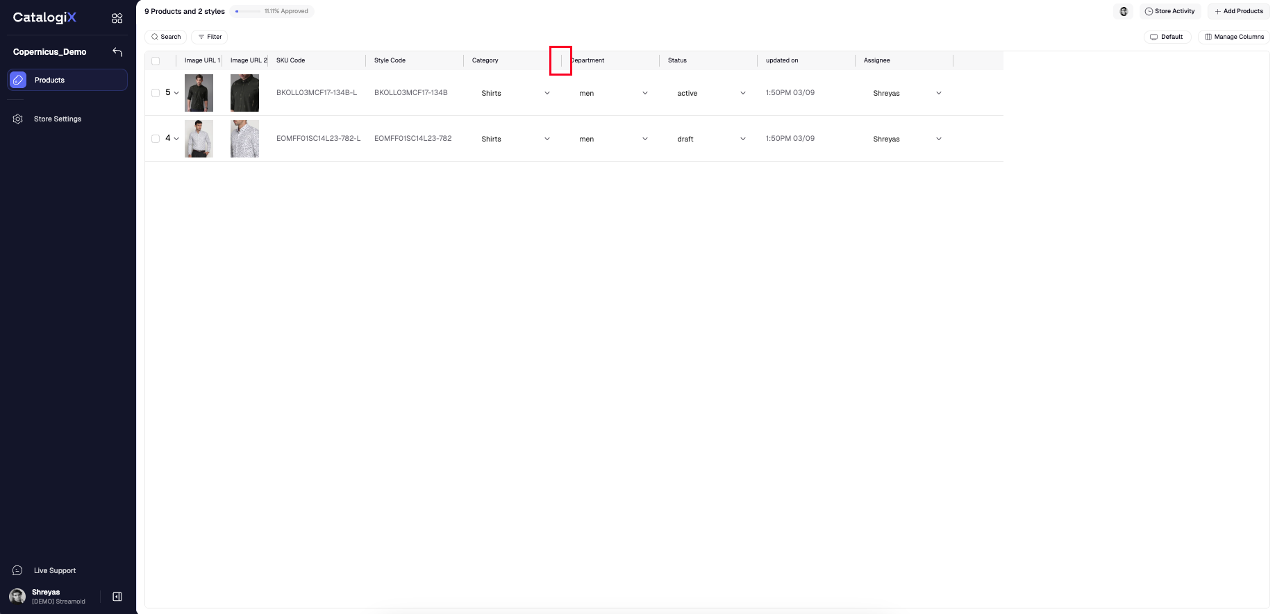 Once you have selected your view, you can now see that your PLP is changed with a category filter and relevant attributes. This helps you focus on reviewing the data for that category.